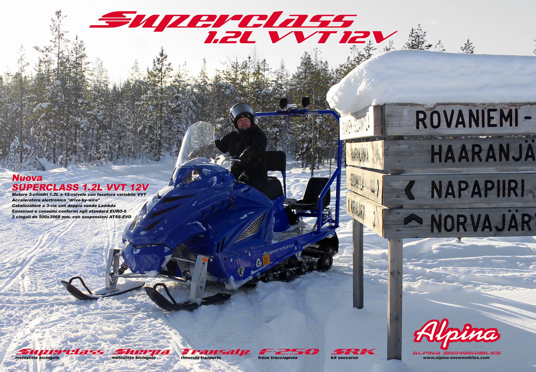 Отличить данную модель Альпины от Шерп можно не только визуально, двигатель и траки тоже разняться. SuperClass больше подойдет для прогулок с ветерком по снежной целине, дополнительно можно прицепить сани и прокатить еще пару человек.