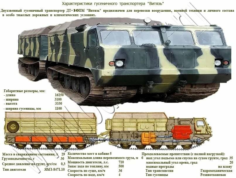 ДТ-30 Витязь — это один из наиболее мощных вездеходов, который способен в экстремальных условиях решать поставленные задачи. Ему не страшны непроходимые болота, водные преграды, снег и песок. В любой из перечисленных стихий он себя чувствует отлично и в тяжелейших условиях способен везти до 30 тонн веса.