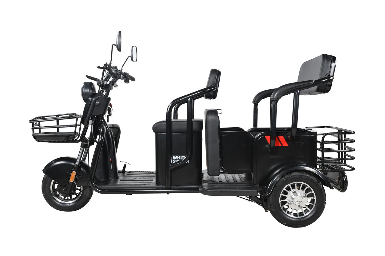 Городской взрослый электрический трицикл привлекает внимание своим минималистичным дизайном. Под стать экстерьеру и конструкционные решения: цельная стальная рама легко выдерживает нагрузку в 250 кг, а широкие колеса гарантируют дополнительную устойчивость