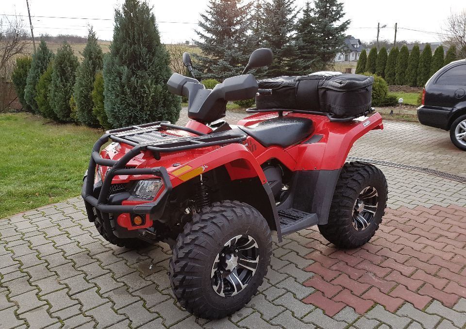Качественный квадроцикл производителя из Тайваня. Отличается от конкурентов высокими техническими характеристиками. 300-кубовый мощный одноцилиндровый 4-тактный двигатель PROMAX 320 DOMINATOR имеет высокий запас мощности, что дает долгий срок эксплуатации. Компактные габариты, высокий клиренс, комфортные сидения для двух человек оставляют только бурю эмоций от путешествий. В отличие от многих других моделей, этот квадроцикл поставляется с лебёдкой в комплекте. Увеличенное сечение рамы с углами жестокости, нагрузка вдвое больше чем у конкурентов, до 200 кг Модель укомплектована надежными двойными гидравлическими дисковыми тормозами, и металлическим фаркопом. Данная модель оснащена усиленной цепью.