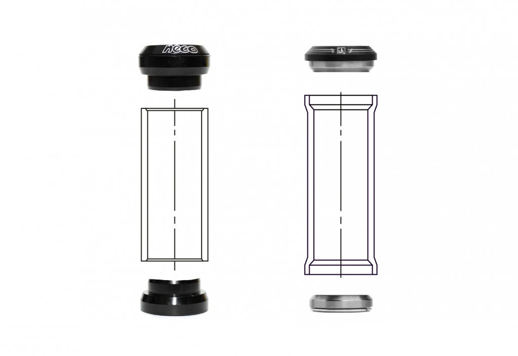 Интегрированная рулевая отличается тем, что чашки ей не нужны, подшипники устанавливаются прямо в стакан доски, имеющий контактный угол.