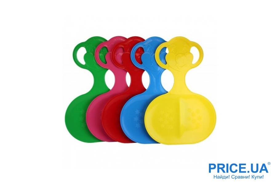Это легкие и дешевые саночки, на которых можно только спуститься с горки. Они не так опасны, как тюбинг, для малышни на скользкой горке. Ими довольно легко управлять с помощью ручки, посадка – низкая. Но вы очень хорошо чувствуете все выемки и трамплины, можно даже отбить себе копчик. Не стоит сажать деток, младше 4-5 лет.