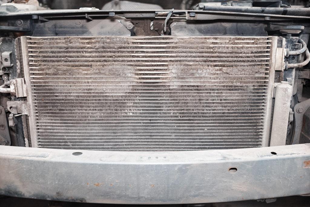 Грязный радиатор. При движении по трассе со скоростью выше 100 км/час на радиатор часто попадают, мошки, влага, пыль. При температуре охлаждающей жидкости выше 100 °С все это спекается в плохо проводящую тепло массу, образуя непродуваемые участки. При движении по грунтовым дорогам пыль из глины забивает как раз верхнюю часть радиатора, которая отвечает за охлаждение радиатора.