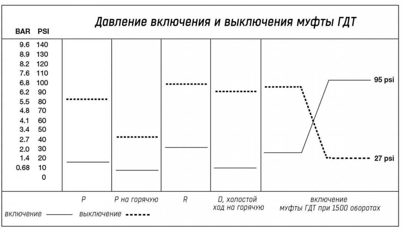 - Проверьте линейное давление, отключение муфты ГДТ, давление муфты Forward и первичного/вторичного шкива, а также подшипники.