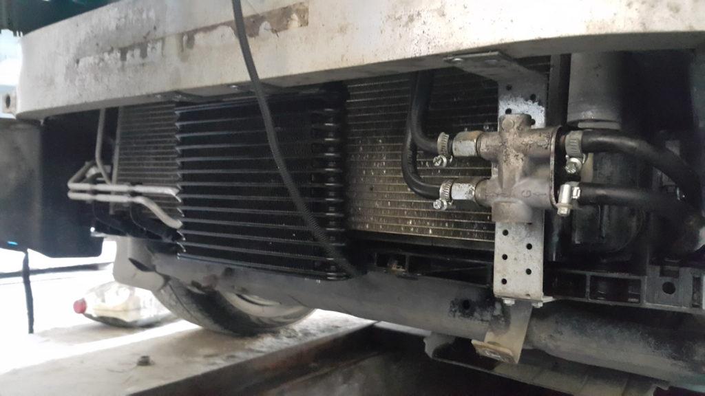 Практика показывает, что установка радиатора вместе с термостатом устраняет возможность перегрева практически на всех режимах в разных климатических условиях и длительным движением в гору. Термостат будет необходим для движения при минусовых температурах. Охлаждение пойдет по короткому кругу, и масло не будет переохлаждаться. При повышении температуры до 75 °C термостат включается, рабочая жидкость начинает циркулировать по большому кругу через дополнительный радиатор и будет нормально охлаждаться.
