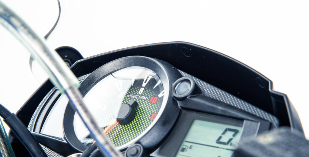 Detalles como su nueva instrumentación con un enorme cuentarevoluciones central o un velocímetro muy fácil de eliminar dejan claro que su hogar son los circuitos. El depósito de gasolina y el de aceite se encuentran ahora situados sobre el depósito, que cuenta con dos aberturas para el llenado de ambos fluídos.