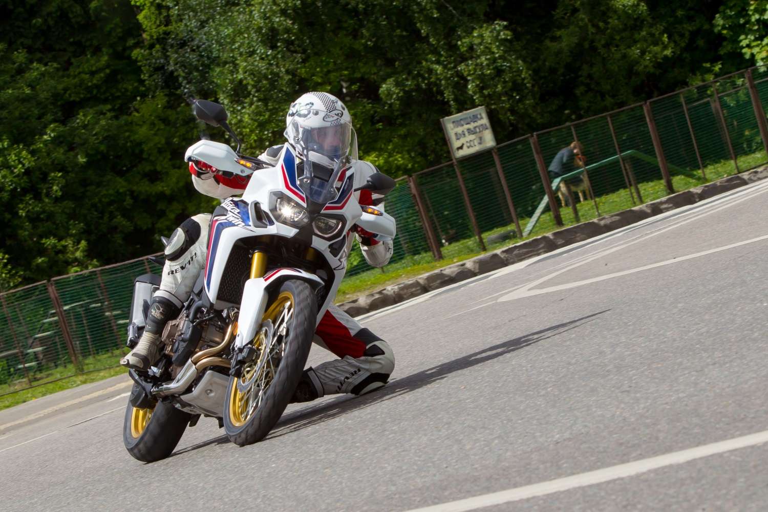 Полностью регулируемые телескопическая вилка перевёрнутого типа и моноамортизатор с тягами Pro-Link однозначно пропагандируют внедорожные ценности. Ход передней подвески 230 мм, ход задней – 220 мм. Отсюда управляемость нельзя назвать спортивной в асфальтовом понимании этого слова. Манера «Африки» отвечать на действия пилота однозначно понравится кроссменам и эндуристам. Мотоцикл всегда под контролем, но немного покачивается на узких покрышках и подвобливает на неровностях.