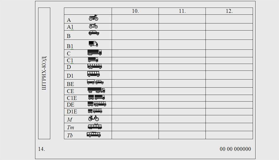 С 2014 года в таблице на задней стороне водительского удостоверения появились новые литеры. В их числе категория М. Против неё рисунок или пиктограмма, изображающая мопед, мотороллер, мокик.