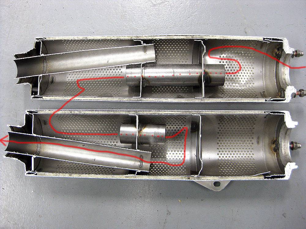 Прямоточный глушитель — это такой же глушитель, но не имеющий перегородок для гашения низкочастотных шумов. В его составе может быть набивка из минеральной ваты, которая гасит высокочастотный шум, но пропускает низкочастотный.