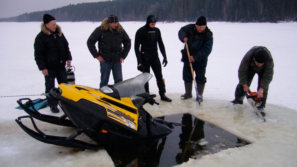 В следующие разы я был умнее: топил снегоход исключительно на глубинах метр-полтора, чтобы избежать утомительного ныряния. Вскоре так набил руку, что “реанимация” извлеченной на летний берег зимней машины стала занимать меньше 10 минут..
