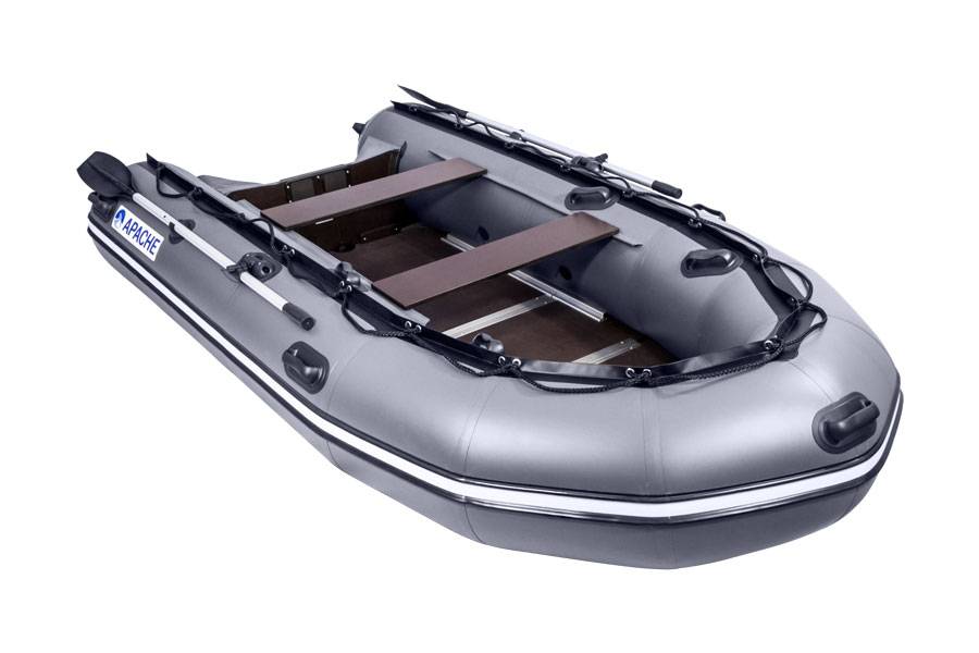 Эта лодка самая бюджетная и компактная из серии Апачи. Диаметр баллона — 48 см, что придает судну устойчивость на волне и ряби. Высокое сиденье (от пола 39 см) также является достоинством плавсредства, поскольку дает возможность рыбакам сидеть долгое время с удобством, распрямив ноги. Складной пол придает средству устойчивости, есть надувной киль. Возможность устанавливать мотор до 15 л.с.