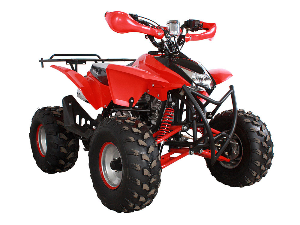 Автоматическая трансмиссия делает управление легким и понятным даже для подростка. Рассчитанная возрастная категория – 7-16 лет. Легкий квадроцикл оборудован двумя багажниками и может разгоняться до 60 км/ч, благодаря двигателю объемом 125 кубов.