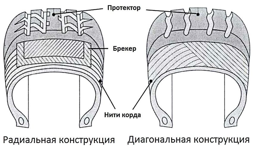 Диагональная и радиальная шина