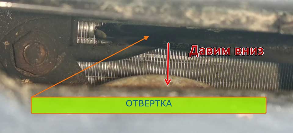 - При повреждении тросика возле замка придется искать выходы к защелке и выгибать ее.