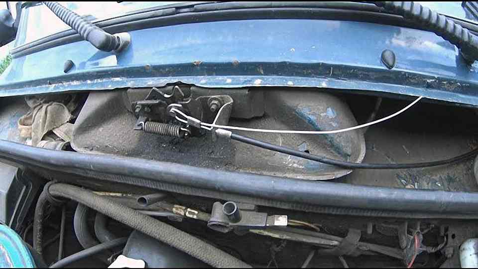 - Найдите, где проходит трос под капотом. Для этого загляните через решетку радиатора и снизу, посмотрите инструкцию по эксплуатации авто.