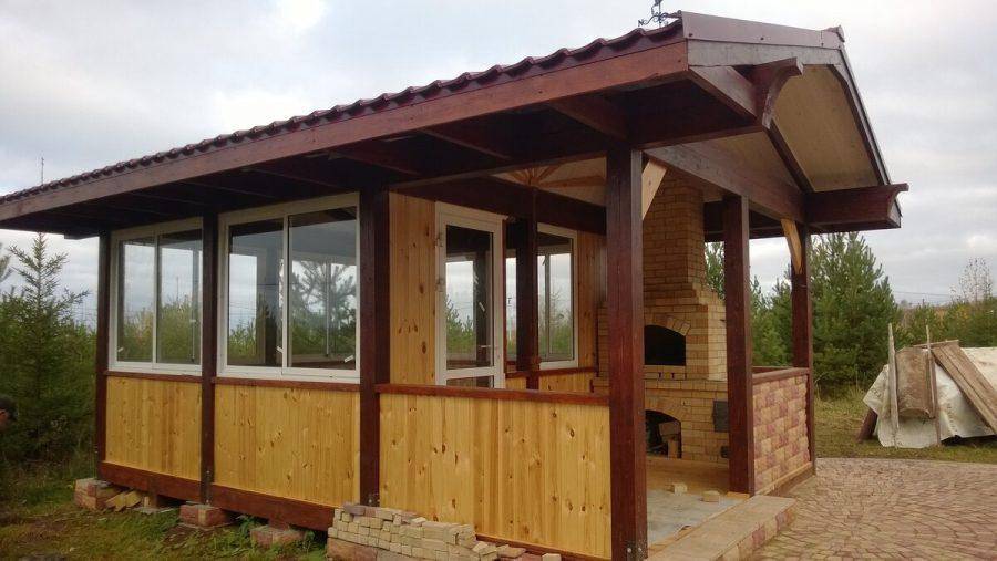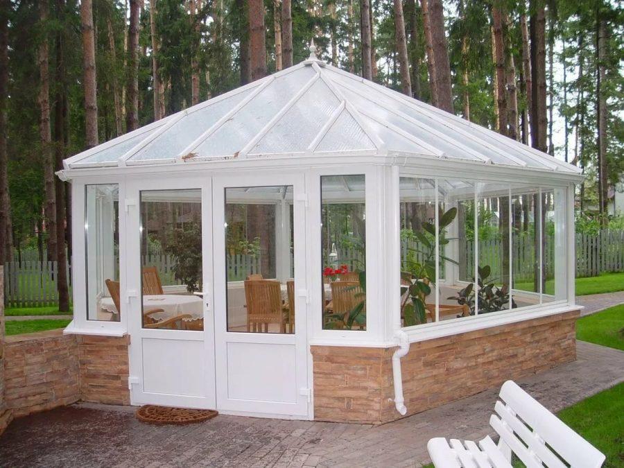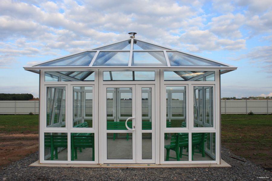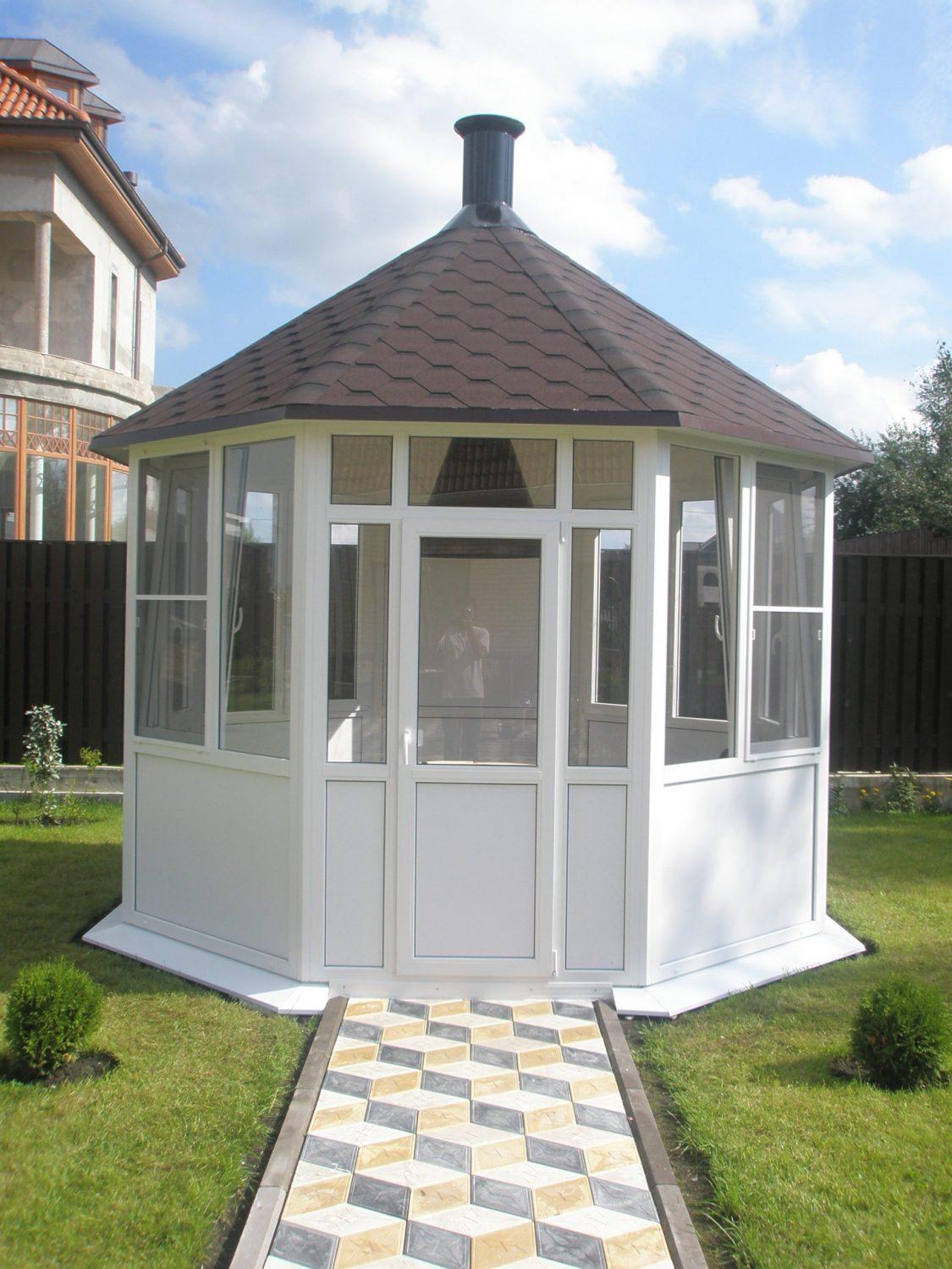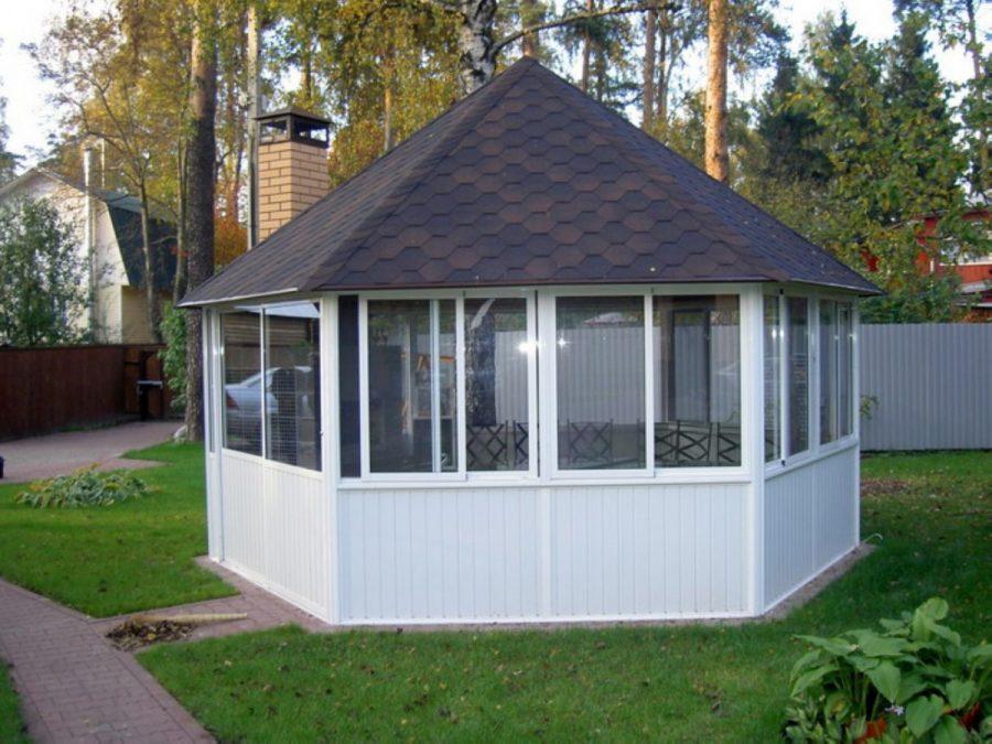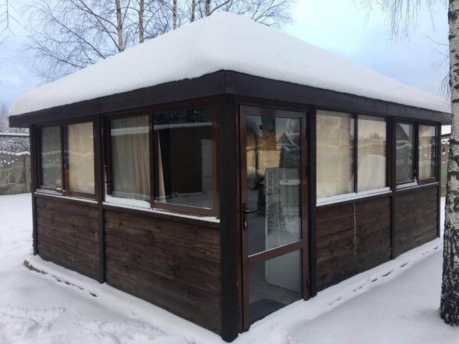 В отличие от предыдущего, этот вид относится к горячим, так как на тепло можно купить утеплитель. Кроме того, закрытые таким образом от ветра беседки имеют ряд преимуществ: