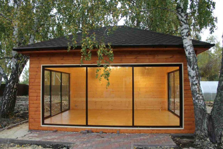 - При желании стекло можно тонировать, это добавит постройке уединения и тепла.