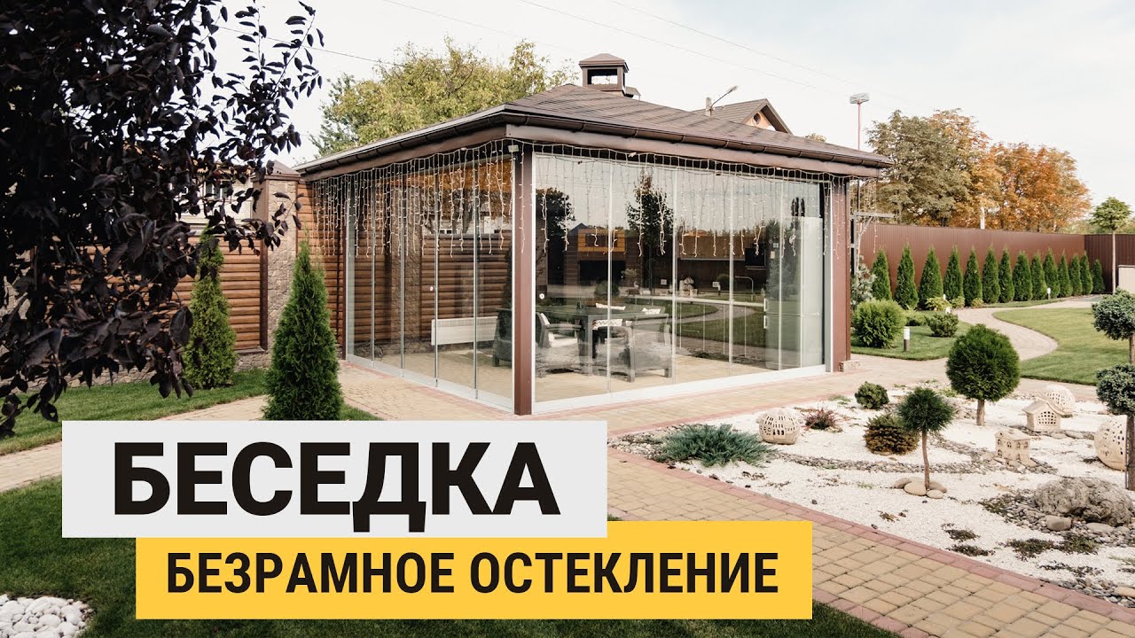Практичные люди часто отдают предпочтение безрамным стеклопакетам. Защищенная таким образом беседка получит максимальное количество ультрафиолетовых лучей. Дополнительные бонусы включают: