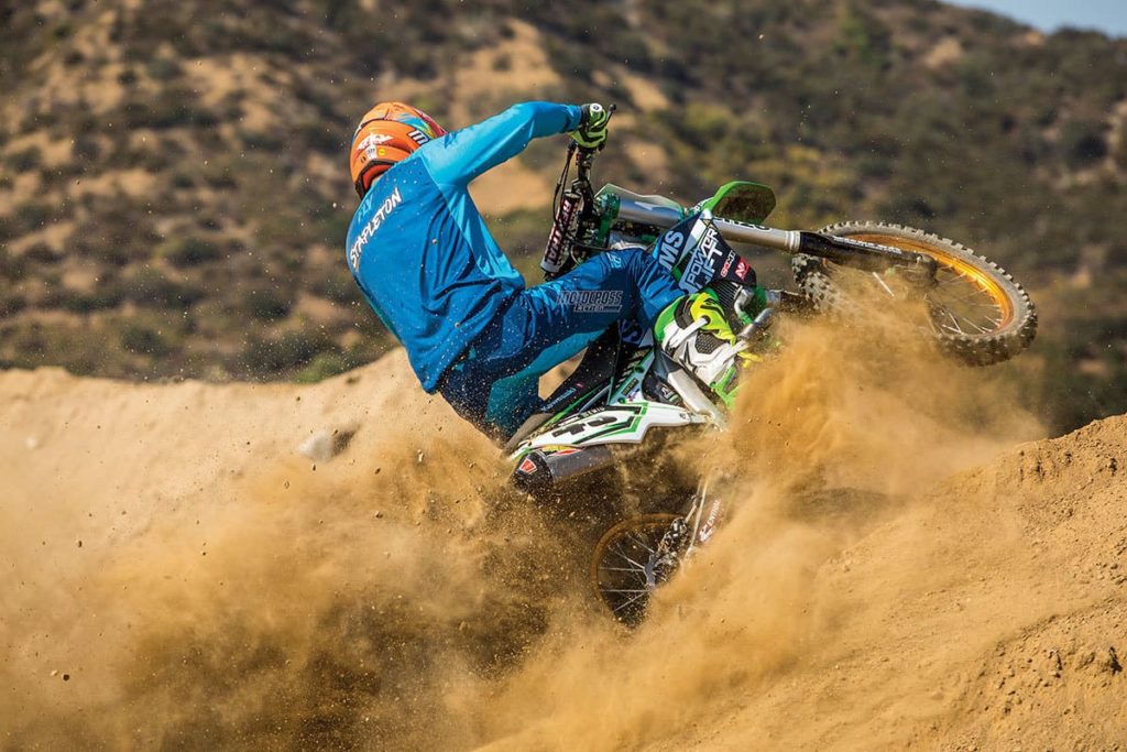 Конечно, все свои возможности Kawasaki KX450F раскроет именно на трассе, под управлением опытного мотокроссмена. Все его многочисленные настройки и техническое совершенство попросту не нужны для любительских покатушек по полям и и лесам, но мотоциклист-профессионал, не понаслышке знакомый с мотокроссом, сможет выжать из Kawasaki KX450F всё, на что он способен. А способен он на многое — у этого мотоцикла по-настоящему взрывной характер.