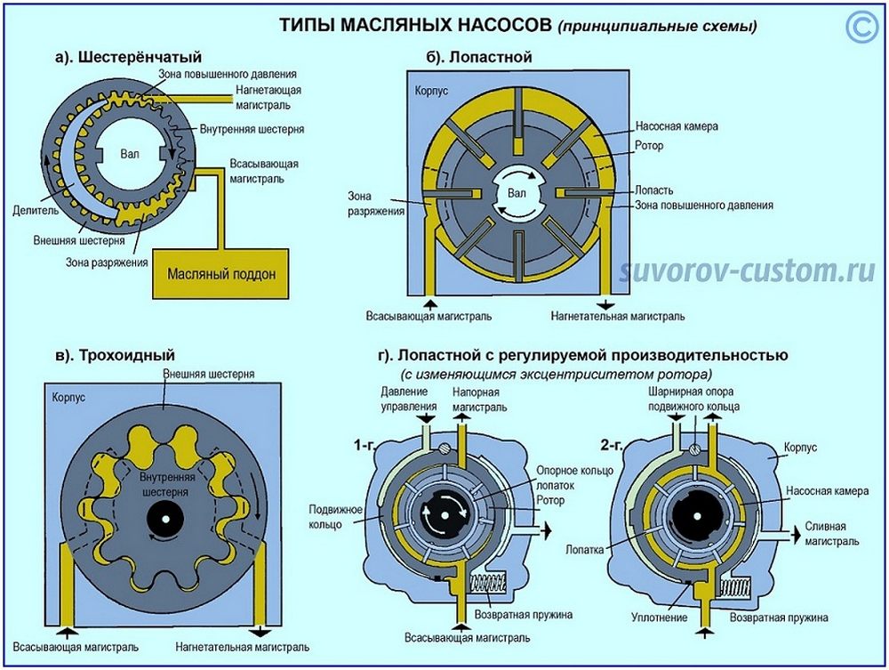 Принцип работы масляного насоса: шестеренный, роторный, регулируемый