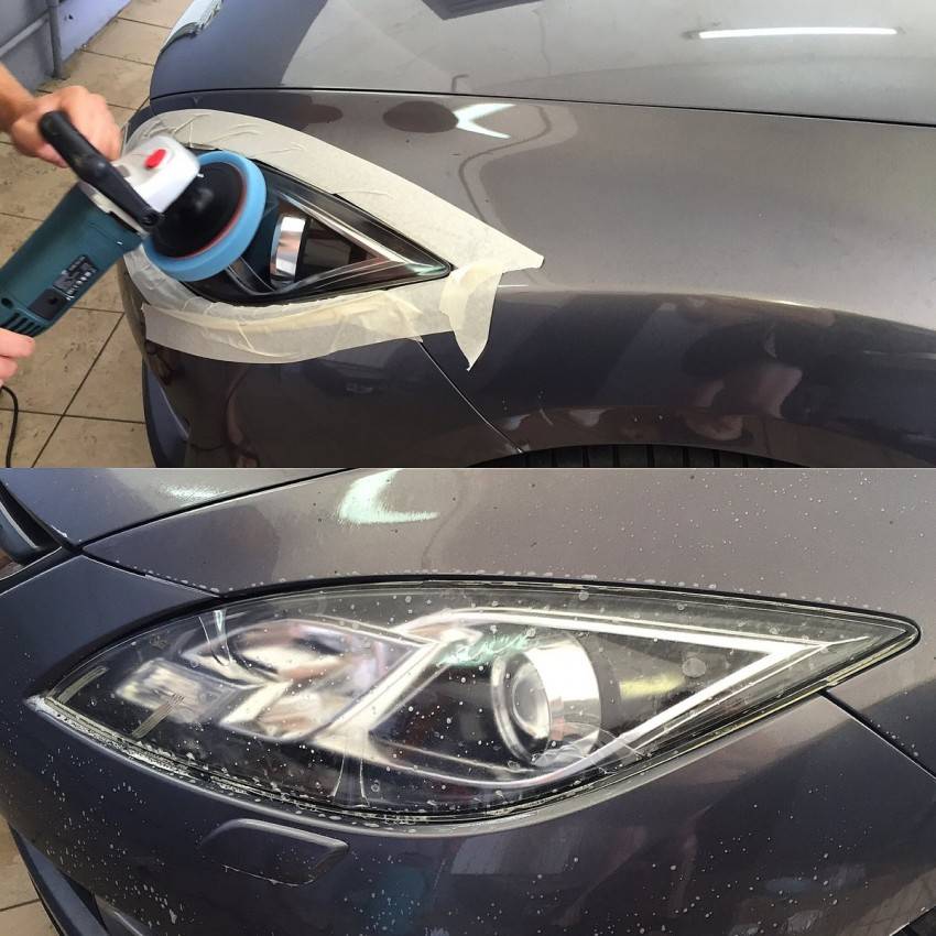 Данная процедура является заключительным этапом ремонта фар своими силами. Предварительно производится грубая шлифовка в несколько этапов, затем обработка полиролью.