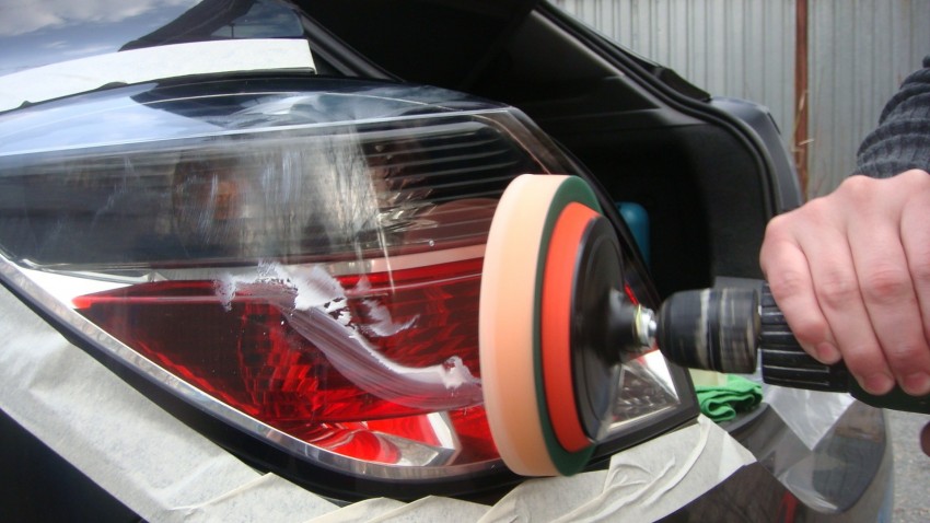 Фары полируют только в гараже или другом закрытом помещении, чтобы пыль и солнце туда не попадали. Поверхность отражателя очищают в несколько этапов: