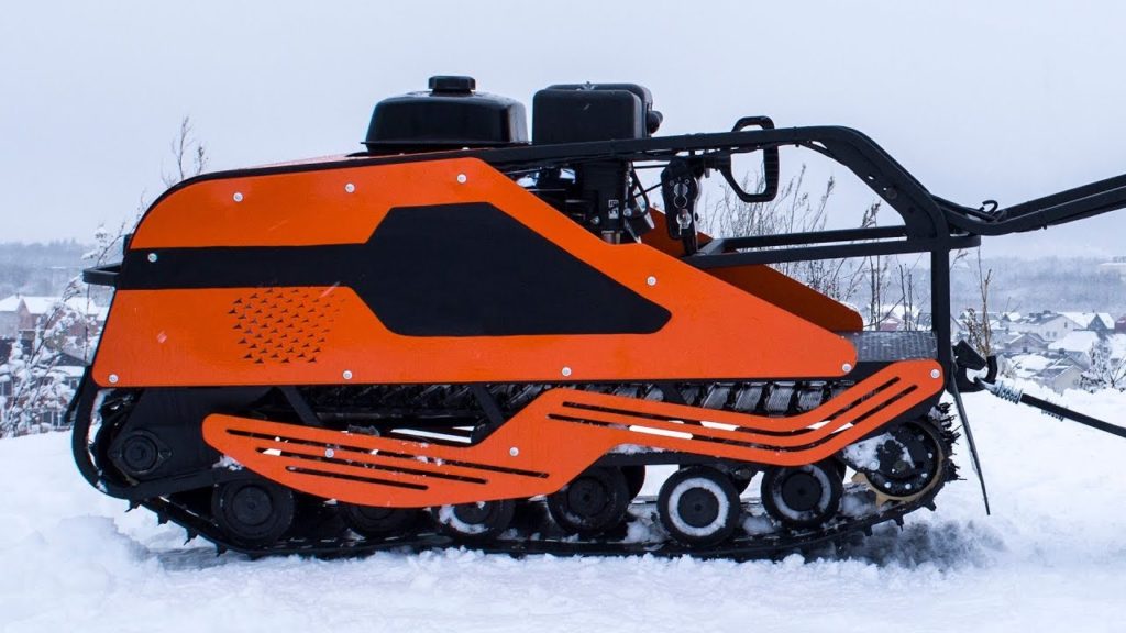 Надежный вариант с мощным двигателем, который подойдет для быстрого преодоления заснеженных участков. Присутствует автоматическое сцепление, которое упрощает эксплуатацию, однако не рекомендуется давать большую нагрузку. Изделие предназначено для транспортировки груза не более 120 кг. Максимальная скорость передвижения – 20-30 км/ч. Установлена катковая подвеска, которая является универсальным решением.