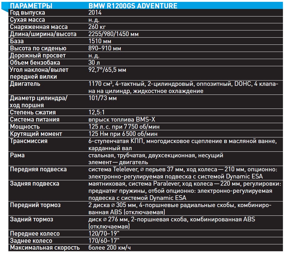 Наверное, в случае с BMW R1200GS Adventure можно было бы попытаться провести аналогии с каким-нибудь внедорожником из автомобильной линейки BMW… но баварцы не делают серьёзных внедорожников — в их арсенале есть отличные кроссоверы. Собственно, в этом году и в мотоциклетной линейке баварского производителя есть некий аналог BMW Х6 — новый XR1000R — требования современного рынка диктуют появление таких моделей. А BMW R1200GS Adventure — настоящий ариец, монументальный, ни грамма не толерантный, созданный для больших парней и приключений. Да, как и полагается в современном мире, эти самые большие парни должны быть весьма состоятельными, чтобы прикоснуться к немецкой легенде…