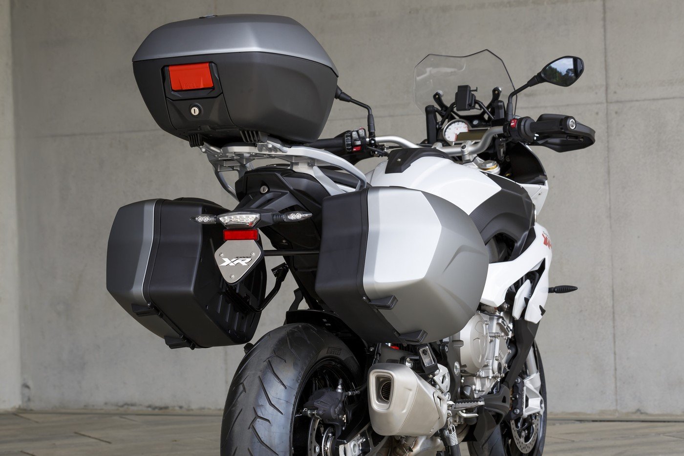 Очевидно, в угоду общей гармоничности форм дизайнеры компании отказались даже от ставшей уже привычной для моделей S-серии асимметричной оптики, оставив в качестве яркого акцента на «клюве» лишь вертикальную полоску светодиодов дневных ходовых огней. Жертвой всепоглощающего изящества стала и задняя часть мотоцикла, чьи невесомость и «прозрачность» плохо вяжутся с таким обязательным элементом туристического мотоцикла, как боковые кофры. Впрочем, создатели BMW S1000XR, напротив, утверждают, что корма (в том числе и подрамник) и глушитель XR разрабатывались с учетом возможной установки багажных емкостей.