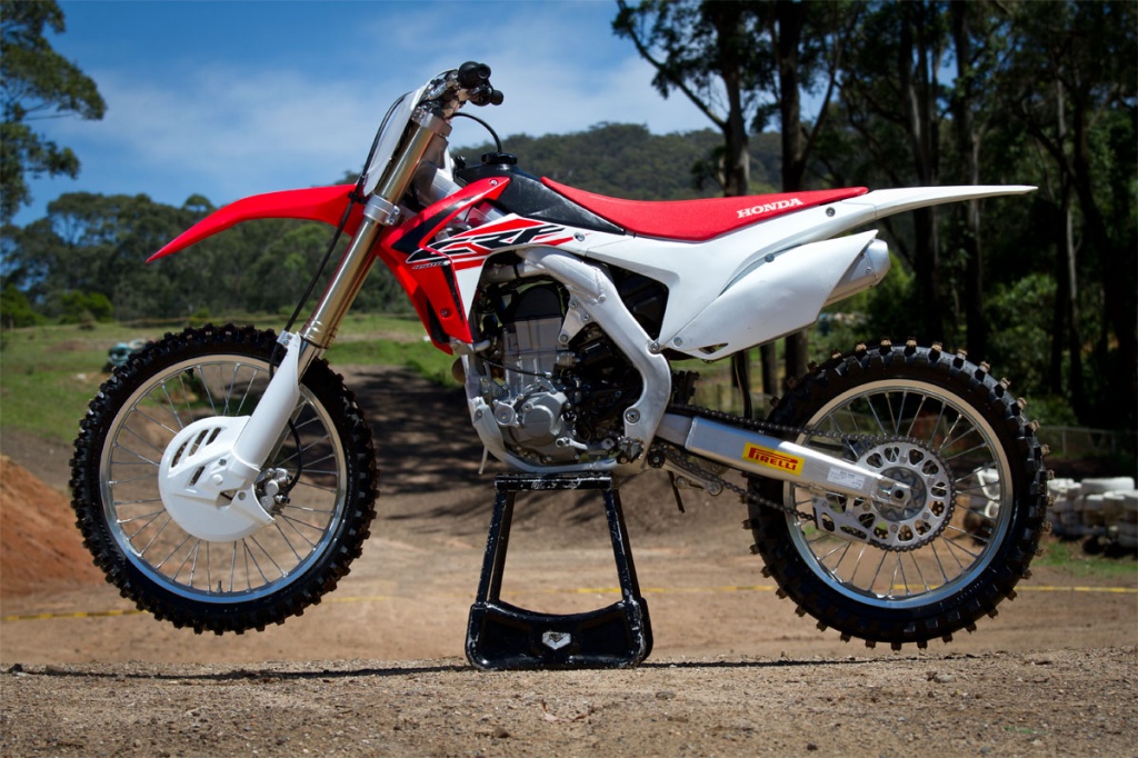 Комментарий тест-пилотов журнала Dirt Bike: «Первое, что сразу же заметили – сильную вибрацию от двигателя, который стал мощнее, чем в 2014 году. Улучшилась приемистость и тяга, теперь CRF450 могла ехать намного дольше на каждой передаче. Мы считаем, что это было достигнуто за счет возможности выбрать один из трех режимов, мы ездили на агрессивном режиме. Двигатель, конечно, не так интересен, как у Yamaha или КТМ, но он предложит вам огромное количество тяги и на мотоцикле не так тяжело ехать, как на машинах других брендов. Для новичков мы советуем выбирать стандартный режим, а для профи больше подойдет агрессивный».