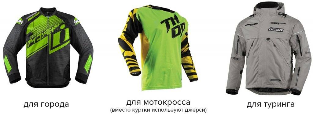 Здесь нужно учитывать в первую очередь защищенность от ударов и падений. В зависимости от места использования экипировки подбирается уровень защиты. Чаще всего защитные вставки располагаются на локтях, предплечье, плечах, спине, груди. Так городская куртка имеет минимальную степень защиты в сравнении с остальными, но она может иметь дополнительные кармашки для вставок, что делает возможным сделать защиту сильнее. Самую высокую степень защиты имеют спортивные куртки, т.к. они используются в мотогонках на больших скоростях или с совершением опасных маневров.