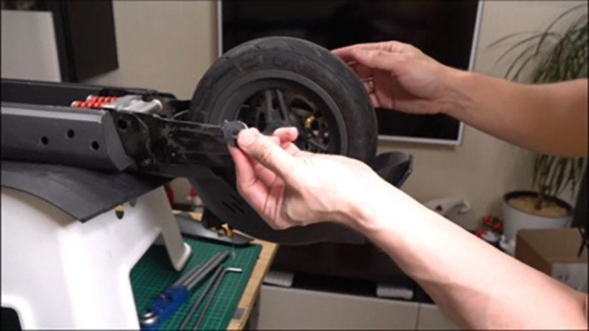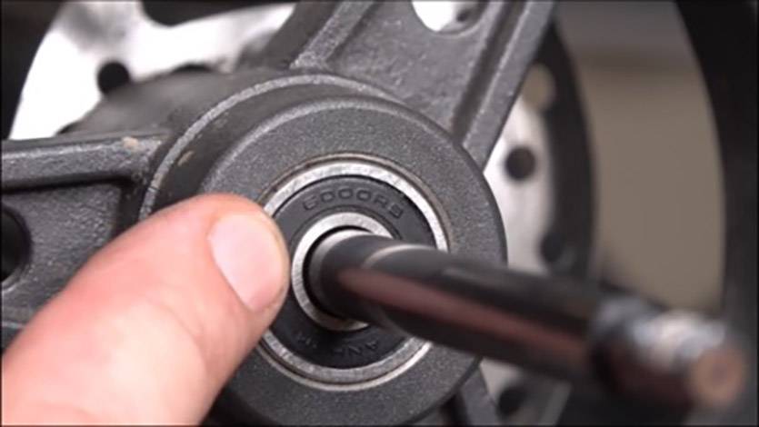 Металл толстый, около 4 мм. Заднее колесо снимается, если открутить гайку и вынуть лепестковую шайбу. Подшипники 6000RS с обеих сторон. Ось задней подвески мощная, выполненная из единого куска металла.
