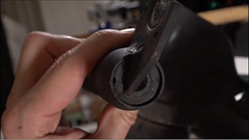 Между основанием и маятником хорошо видна пластиковая шайба, которая является проставкой для того, чтобы избежать скрипа.