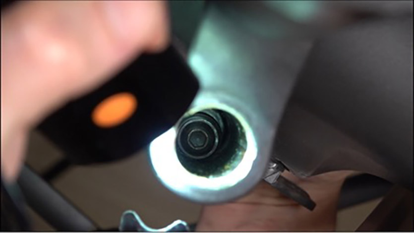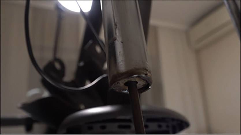 Заглядывая внутрь вилки, хорошо видно, что смазки там практически нет.