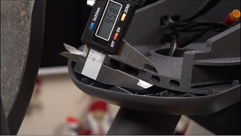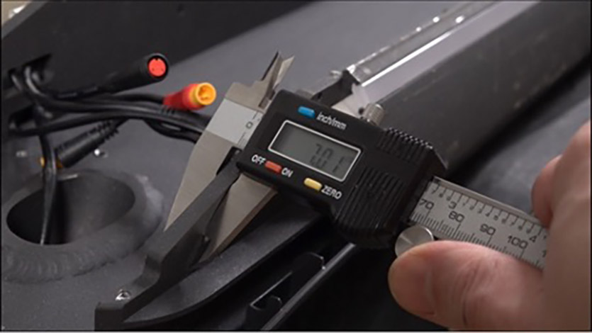 Измеренный максимальный ток контроллера – 20,27А, а напряжение батареи перед замером было 62,29 В. На основе этих данных выходит, что фактическая мощность составляет более чем 1200 Вт. Батарея закрепляется в передней и задней частях, выполнена в алюминиевом корпусе.
