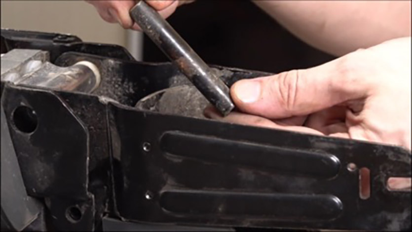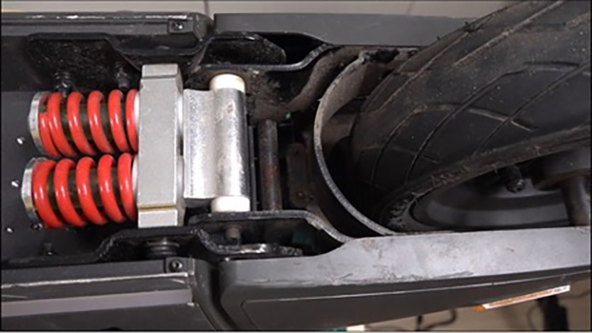 Задняя подвеска выполнена на стальном подрамнике и крепится к боковинам деки тремя болтами с каждой стороны. Отверстия для доступа к креплениям закрывается резиновой заглушкой.