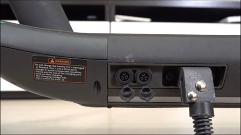 Рядом с подставкой располагаются разъемы для зарядки. Выглядят они необычно, их нестандартная форма предотвращает случайное подключение зарядных разъемов другой продукции Inmotion.