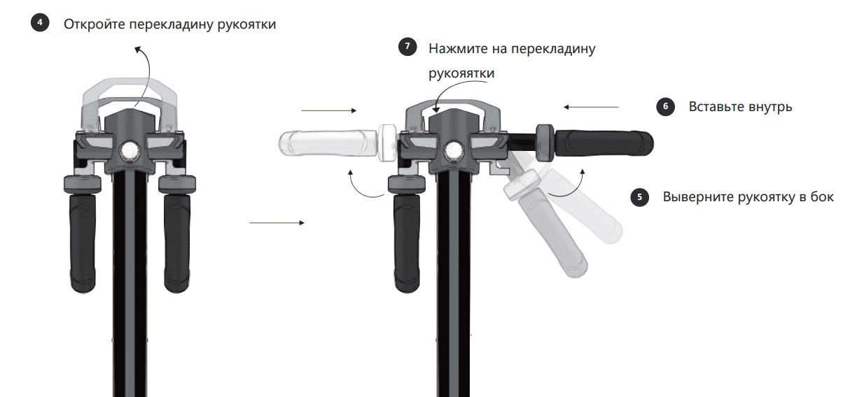 Собирается самокат в обратном порядке, тоже за долю секунды. Руль не люфтит.