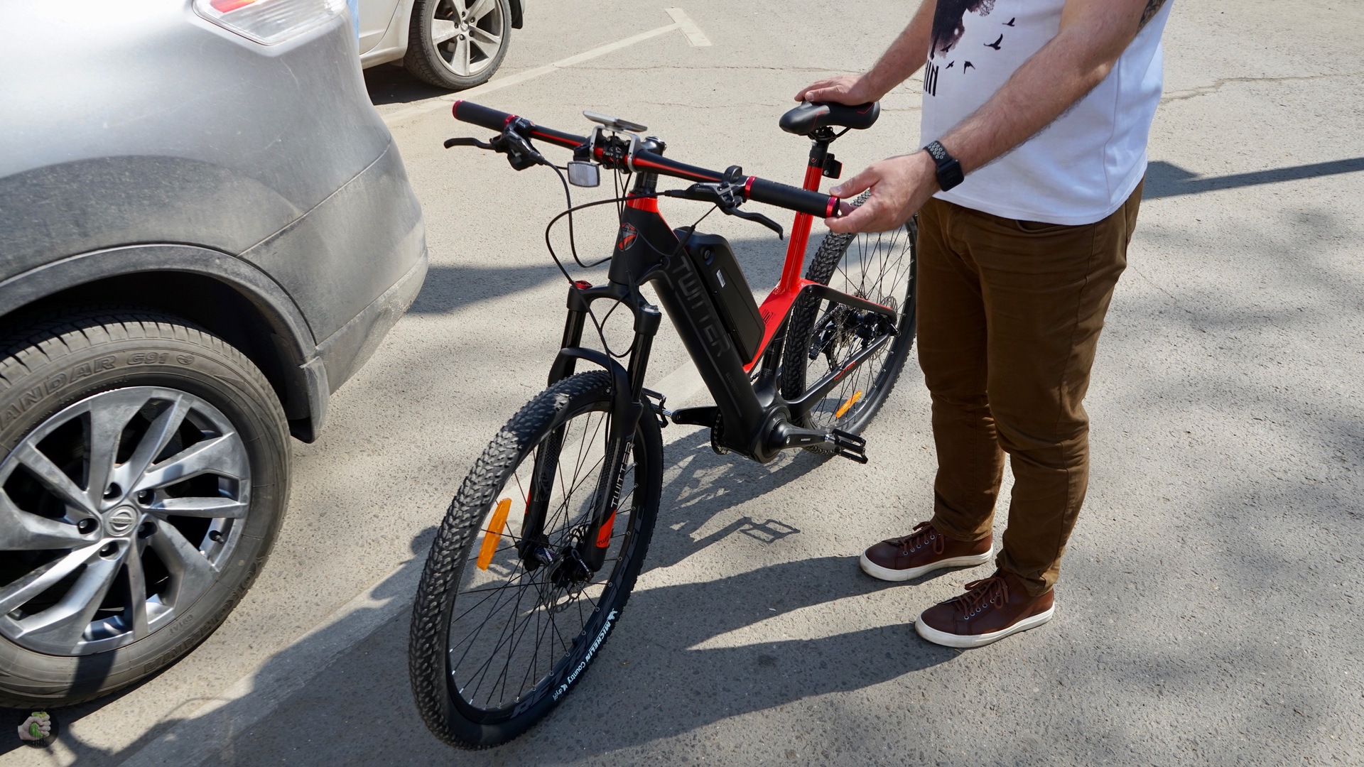 Первым делом моя жена спросила: «А что же, теперь при подъёме в горку ты не будешь страдать?» Я ответил, что страдать всё равно немножко придётся, потому что здесь нет РЫВКА и ВОЛШЕБНОЙ КНОПКИ, здесь нет возможности не крутить педали. То есть электродвигатель помогает при подъёме, но ножками работать всё равно придётся.