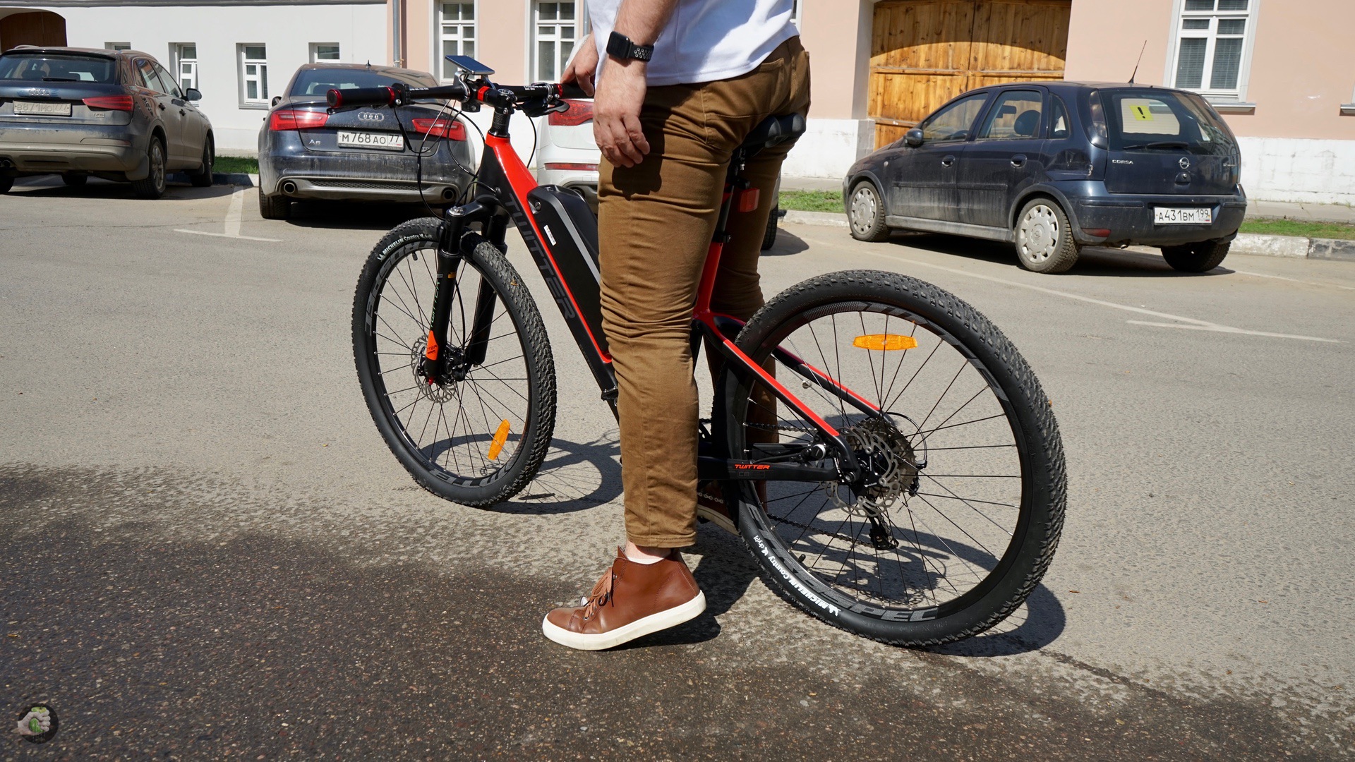 На самом деле, карбон и велосипед — это большие друзья. Здесь ведь есть батарея, так что с весом надо было как-то работать, вот для этого в первую очередь и пригодился лёгкий и прочный материал. Я не думаю, что с Twitter TW-E9W вы будете исполнять какие-то адские трюки, прыгать, летать — в общем, сломать эту раму довольно сложно, но лучше не пытаться. Пока катался на велике, никаких скрипов и других проблем не заметил: летишь себе над матушкой-Русью, очень хорошо и гладко.