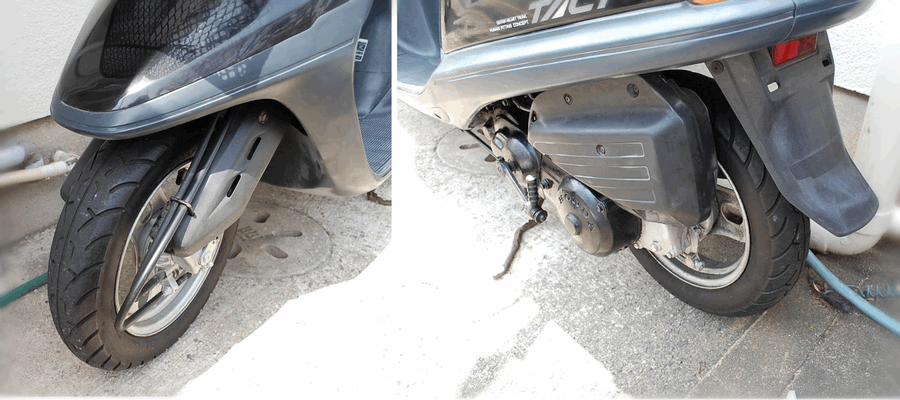 Еще один важный плюс, принимая во внимание российские условия — это возможность в любой момент установить на Honda Tact широкую резину. Это позволит увеличить скорость и проходимость скутера, сделать ее заметно выше