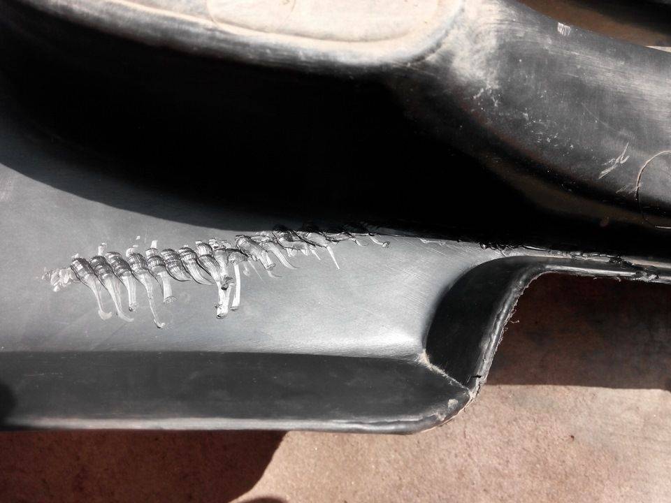 Таким образом, трещина ликвидирована. Охладить пластик можно водой. Затем необходимо зачистить место ремонта. После чего обезжириваем поверхность, а затем наносим шпаклевку. Только после того, как шпаклевка высохла, ее необходимо немного зачистить и можно приступать к покраске.