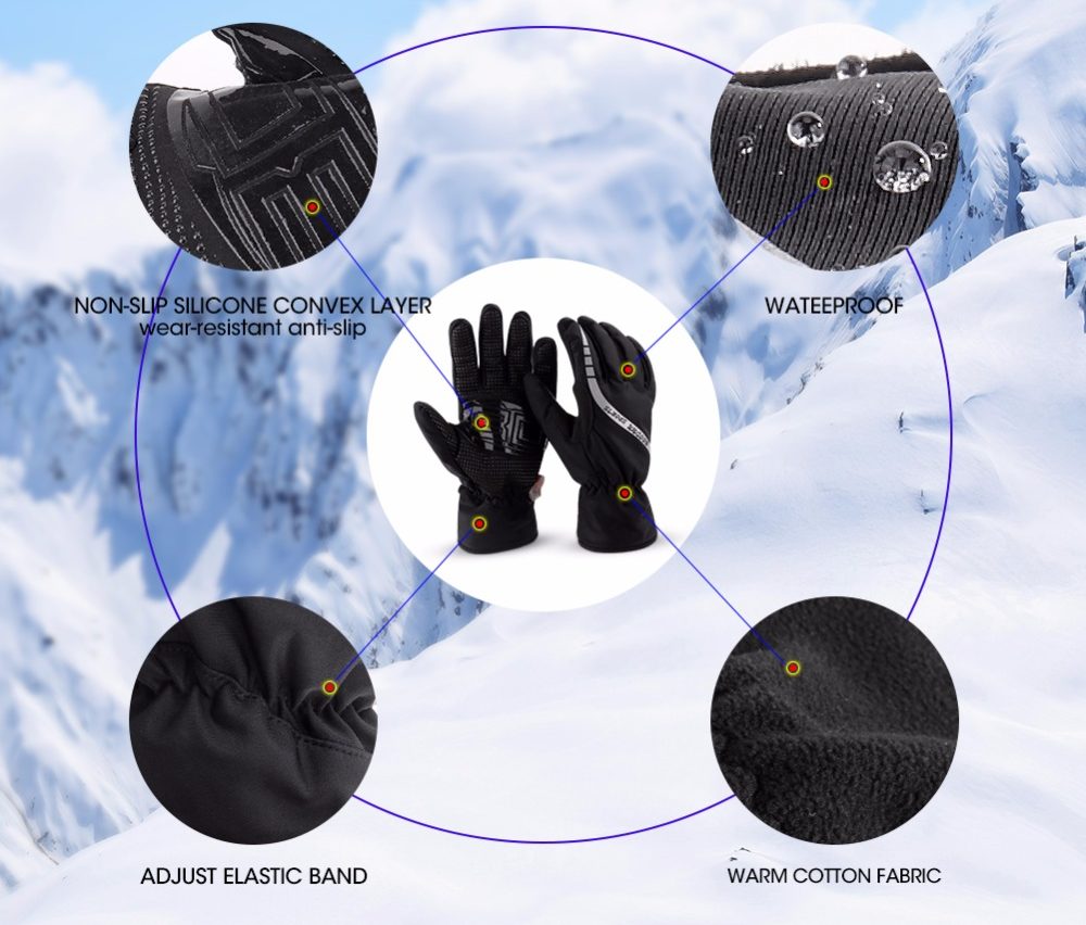 Они должны быть теплыми и компактными для удобной их эксплуатации, с одной стороны должна быть ткань «виндстоппер», а со стороны ладоней — микрофлис с гелевыми вставками.