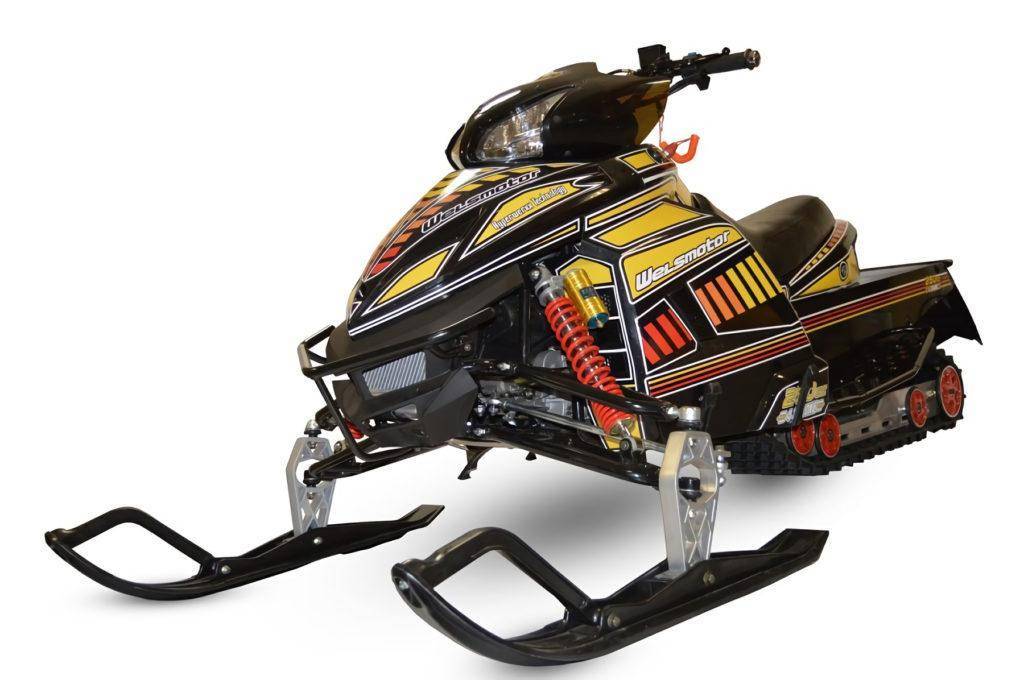 Снегоход Welsmotor 250 относится к категории бюджетных. Он способен развивать скорость до 70 км/ч, заводится кнопкой электростартера и легко перевозит двух взрослых человек.