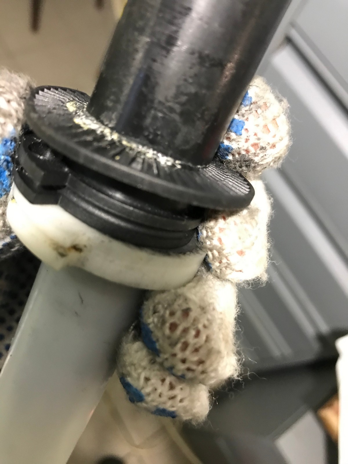 На фото слева основание штатной ручки белого цвета и ее резиновая часть, а пластиковое кольцо ранее было приклеено к резиновому основанию китайской ручки и закрывало место вывода нитей обогрева и место пайки с проводами. Справа на фото разобранная китайская ручка. Не перестаю удивляться, как все просто оказалось. Далее, надел резиновую часть китайской ручки на основание штатной.