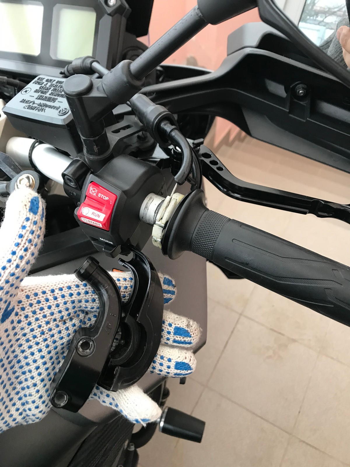 Примерил на мотоцикл и провернул ее так, что бы провода смотрели почти вниз при закрытой ручке газа. Такое расположение вывода провода позволяет не замечать сам провод при работе ручкой газа. Снял и проклеил места, через которые может попасть влага, добавил немного клея, чтобы ручка не проворачивалась. После чего собрал в обратной последовательности и закрепил проводку пластиковыми хомутами к штатным жгутам. Подключение питания на Трейсере очень простое и требуется лишь удлинить провод питания ручек и герметично замотать изолентой проводку, разъемы и микроблок управления обогревом. Два провода питания удлиняем. Снимаем стекло и пластиковое основание стекла и получаем доступ к штатной проводке. Немного углубляемся и находим три свободных разъема, к четвертому подключен штатный прикуриватель. Поскольку потребляют ручки 2А, смело подключаемся к любому свободному разъему, способ подключения выбираете сами, главное герметично и безопасно. Сборка в обратном порядке. Если напряжение на разъём не подается, то нужно проверить и поставить предохранитель, который находится за пластиковой щекой с правой стороны мотоцикла. Ву-а-ля ручки установлены.