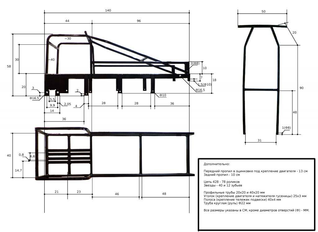 гост 17475-80). Расположение крепежных элементов рамы и ходовой части самодельного мотобуксировщика зависит от положения силового агрегата (двигателя).