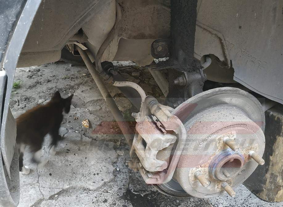 Отодвигаем тормозной шланг в сторону. Его удобно завести за стойку стабилизатора