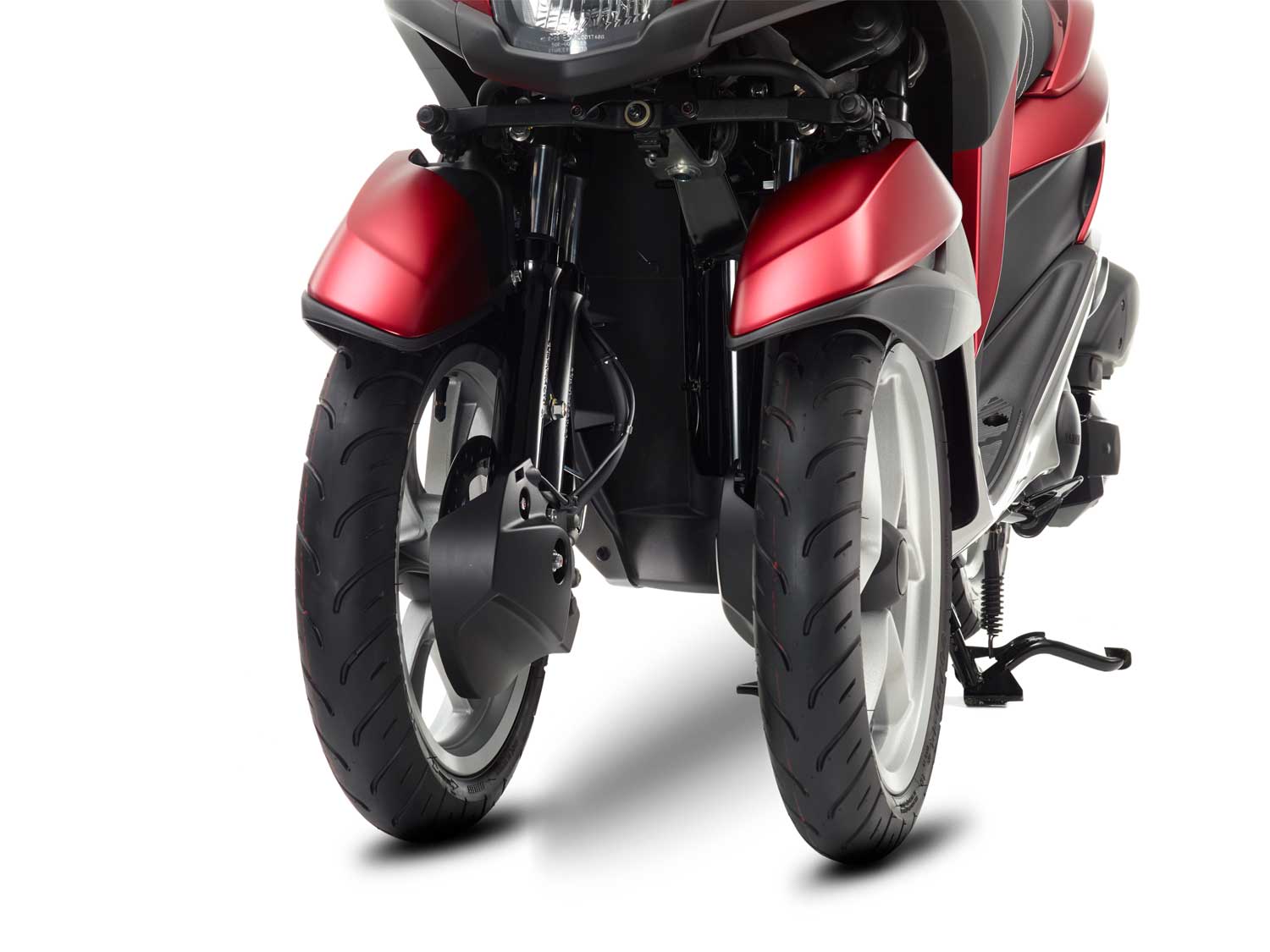 На фоне двухколесных моделей выделяется относительно недавно появившийся в ассортименте продукции компании Yamaha электроскутер Tricity 125. Его основным отличием является наличие трех колес. Если чаще всего впереди расположено одно из колес, а двум отведено место в задней части трицикла, то при разработке этой модели конструкторы поступили иным образом.