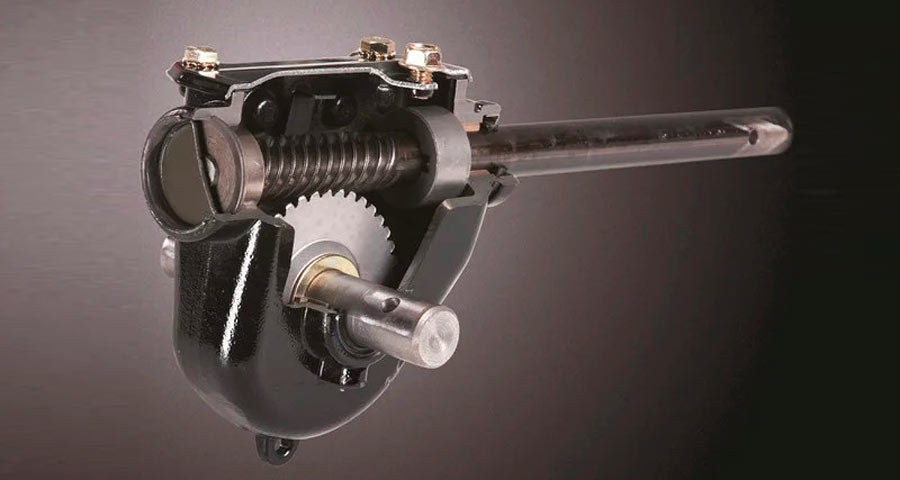 Основным элементом редуктора является шестерня. Шнек или шнековый механизм снегоочистителя фиксируется на валу с помощью нескольких срезных болтов. Последние выполняют не только функцию фиксации, но и являются защитой, предохранителем при попадании в шнеки камней и тому подобного. При этом срезаются эти болты, препятствую более серьёзной поломке.